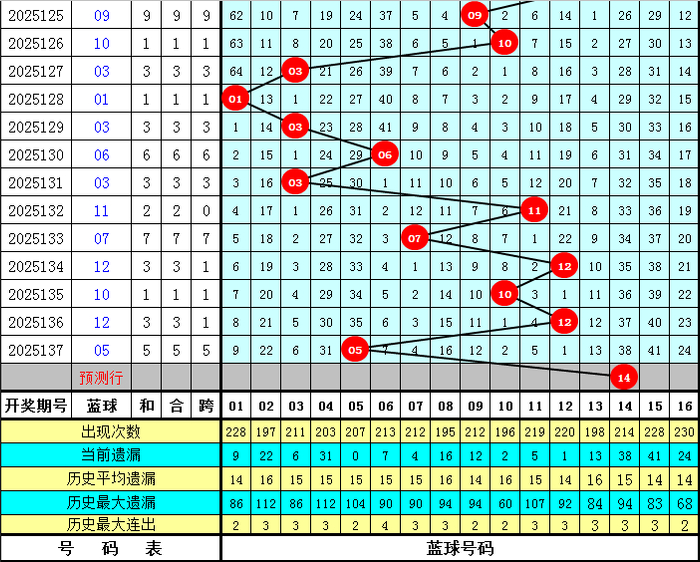 蓝球号码分析:上期蓝球为05,开出2路号码,蓝球最近10期012路比为5:3:2,最近30期012路比为11:12:7,最近100期012路比为30:38:32,本期蓝球看好2路号码,四码蓝球参考02、05、11、14。